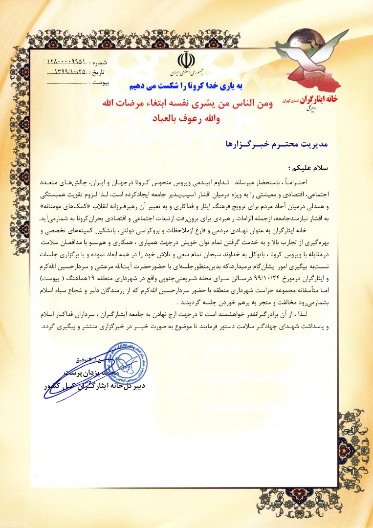 اطلاعیه شماره۵۷۳ خانه ایثارگران ...